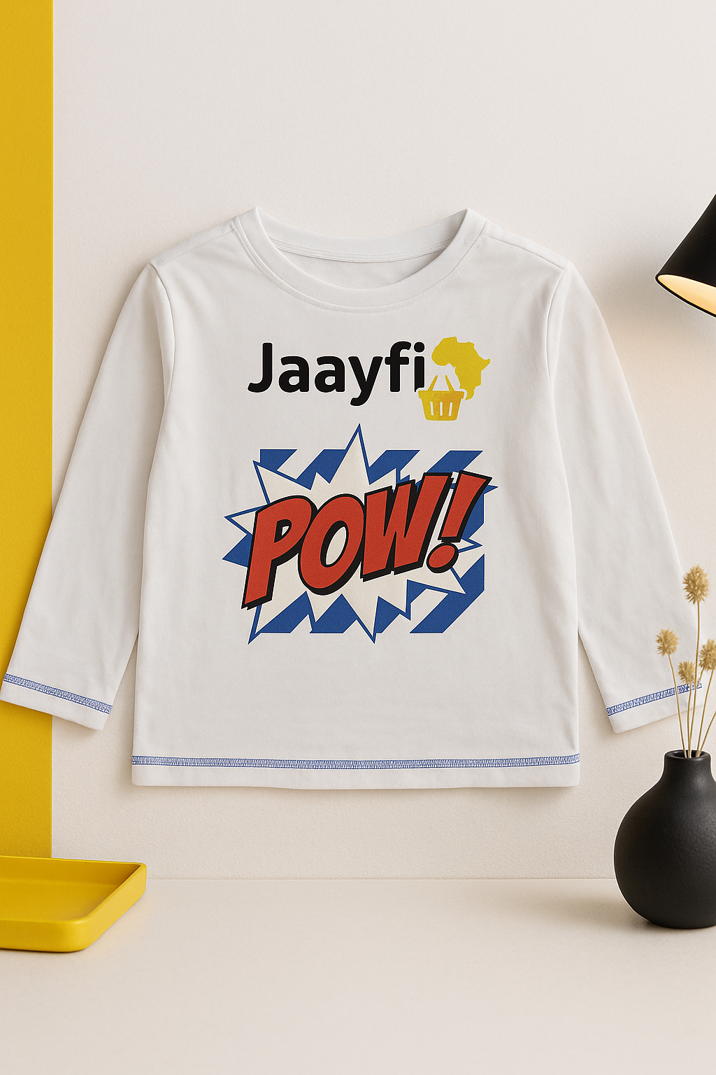 🎨 Couleur : blanc avec imprimé rouge et bleu “POW”